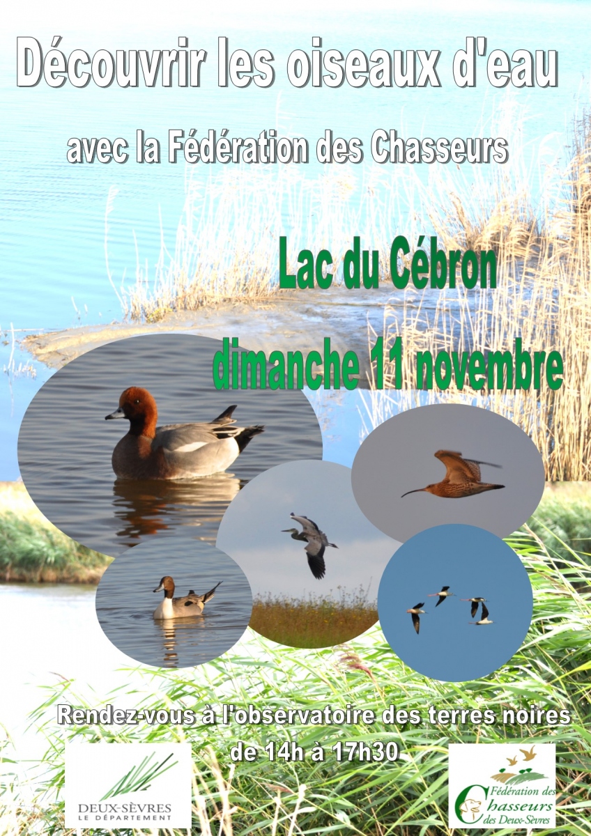 Le dimanche 11 novembre 2018, de 14h à 17h30, la Fédération des Chasseurs vous invite à observer les oiseaux d'eau à l'observatoire des terres noires au lac du Cébron.