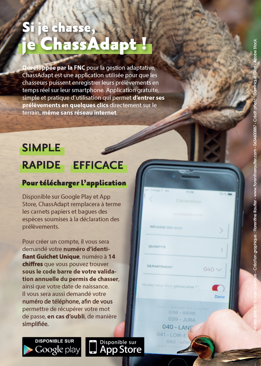 La Fédération Nationale des Chasseurs a initié une enquête nationale couvrant les prélèvements de toutes les espèces chassables via ChassAdapt.