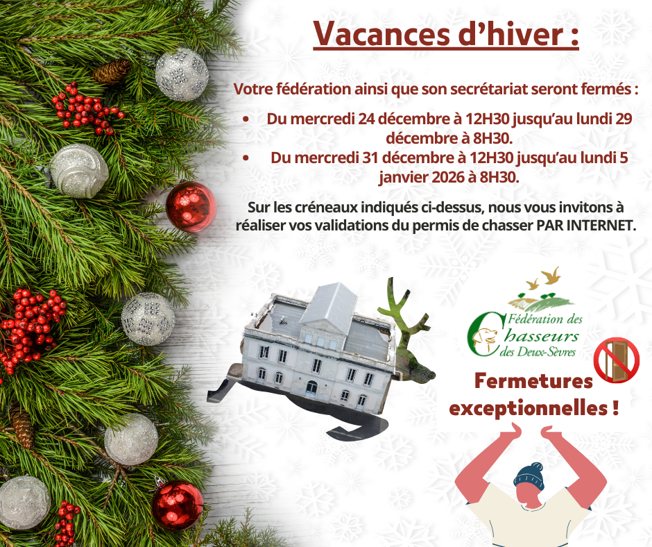 Catégorie Actualités Le 17 décembre 2025 Fermetures vacances d'hiver 2025/2026 Partager cette page Transférer Facebook Twitter Print HTML